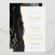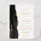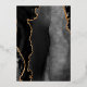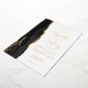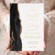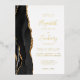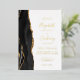 The left-hand edge of this elegant modern wedding invitation features a black watercolor agate border trimmed with faux gold glitter. The customizable text combines handwriting, copperplate and italic fonts in real gold foil on a white background. The reverse side features a matching black and gold agate design.