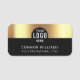 Elevate your team's professional image with this sleek, modern black and gold name tag. Featuring a luxe style faux metallic gold gradient and a customizable logo placement, this business name badge is perfect for employees, conferences, events, and office staff.