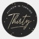 Modern Black Gold Calligraphy 30th Birthday Classic Round Sticker