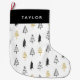 Fun and festive, Modern Black & Gold Christmas Tree Pattern Personalized Christmas Stocking is the perfect way to decorate your home while waiting for Santa to arrive. Features black and gold tree pattern on a white background. White text "Taylor" can be changed to fit anyone's name.