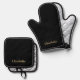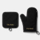 Modern black gold custom name monogram plain solid oven mitt & pot holder set