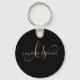 Modern Black Gold Feminine Script Monogrammed Keychain