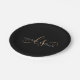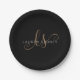 Modern Black Gold Feminine Script Monogrammed Paper Plate