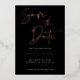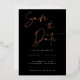 Modern Black Gold Foil Calligraphy Script Wedding Save the Date Card with real rose gold foil. Change foil colour to another colour if you like. Background colour can also be changed.