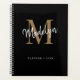 Modern Black Gold Girly Monogram Script Name Planner. Easily personalize this modern elegant planner with your custom monogram and name.