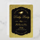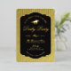 Invite your guests with this elegant gold foil equestrian themed Derby Party invitation. The background has a striped pattern over a faux golden image. The design features a gold foil race jockey icon, elegant script on black, and foil border outline. All text can be personalized with your event details, so this design can also be used for other events: derby watch party, horse birthday party, engagement party, shower, horse barn stables event. Colors are also editable to your taste.