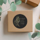 Modern Black Gold Leaf Wedding Monogram Classic Round Sticker