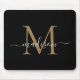 Modern Black Gold Monogram Elegant Girly Script Mouse Pad