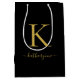Modern Black Gold Monogram Script Name Medium Gift Bag