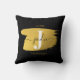 Modern Black & Gold Script Monogram Initial Throw Pillow