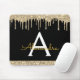 Elegant Black and Gold Modern Sparkle and Dripping Glitter Girly Monogram Name Monogram Mousepad. This Chic Mousepad can be customized to include your first name and initial.