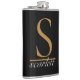 Modern Black Gold Stylish Monogram Girly Script Hip Flask