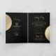 A modern black and gold semi circle abstract wedding design. This contemporary design is ideal for all seasons Spring, Summer, Fall and Winter weddings. A stylish gold foil look design in a trendy black and gold theme. A classy wedding order of service program design with modern elements. Matching wedding stationery items and other wedding invite formats are also available.