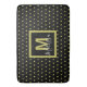 Modern Black Golden Circle Pattern Monogram Bath Mat