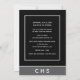 Send your 10th class reunion classmates our modern flat card invitation. This elegant design template features a black and grey background with white typography that reads "10th Class Reunion" with your school name and year to personalize Below is your school's monogram. The back of the card has more of your celebration details for you to customize. Designed by world renowned artist ©Tim Coffey.