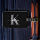 This simple, elegant black luggage tag with your first name in a trendy script font in white typed over your first initial in a modern cap font in grey on one side and a slide in card for your name, address and phone number on the other would look fabulous on your suitcases. It's stylish and trendy and yet very classic.