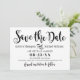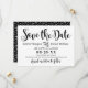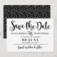 Modern wedding save the date announcement cards feature a modern black and white colour scheme with bold and playful handwritten calligraphy script typography with stylish scroll details. Personalize the casual yet elegant custom text with the bride and groom's names and wedding details. Includes a fun contrasting polka dot pattern on the back.