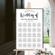 Modern wedding seating chart welcome poster / sign features a modern black and white color scheme with bold and playful handwritten calligraphy script typography with stylish scroll details. Personalize the casual yet elegant custom monogram and guest seating arrangement text for your wedding day.