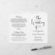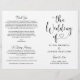 Striking black heart script spells out "The Wedding Of" across the front of this modern ceremony program with a romantic heart flourish accent. The bold black calligraphy creates a dramatic, contemporary statement against a clean white background. Inside pages are fully customizable for your bridal party, ceremony order, and a personal thank you message on the back cover. Programs are printed on text-weight paper and arrive flat, requiring a simple center fold.