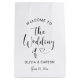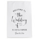 A premium custom wedding gift bag showcasing "Welcome to the Wedding of" in flowing black heart script with a charming heart flourish, printed on both sides. The couple's names and wedding date complete the design in crisp black typography. All text is fully customizable. A versatile wedding welcome bag for out-of-town guests, ideal for filling with itineraries, snacks, and local goodies for hotel room arrivals.
