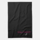 Modern Black Hot Pink Simple Script Monogram Name Kitchen Towel
