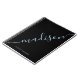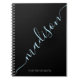 Modern, girly black and light blue custom personalized spiral notebook. This simple design features black colour background, with light blue colour name or monogram text template. The name is written with a huge beautiful swirly hand lettered style script. Great feminine gift for girls and woman. If you need help or matching items, please contact to me.
