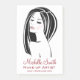 The design features a minimalist, hand-drawn illustration of a stylish woman with flowing hair and long, luxurious lashes. Its clean black-and-white aesthetic is enhanced with subtle blush tones, evoking a timeless yet contemporary feel. Paired with refined script typography and bold lettering, the layout communicates both creativity and confidence.