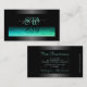 Modern Black Luminous Teal Patterned and Initials Business Card