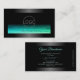 Modern Black Luminous Teal Patterned and Logo Business Card