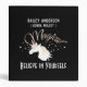 This product design features a contemporary unicorn illustration with bubbles and the word, Magical. The cool mythological animal illustration in white, rose pink, and black background makes a modern and unique 3 ring binder with personalized text - Believe in Yourself.