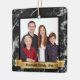 Beautiful and elegant black and white marble print background customized with your colour family photo. Christmas Ornament personalized with your family portrait, name or headline. Great ornament gift idea for anyone!