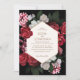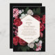 The dramatic black background enhances the vibrancy of the florals, making this invitation ideal for rustic barn weddings, winery receptions, boho-chic ceremonies, or dark romantic wedding themes. Whether you're planning a cozy winter gathering or a luxurious fall event, this invite brings sophistication and warmth to your wedding stationery suite..This watercolor floral invitation features rose, peonies flowers in rustic maroon,magenta,ivory and red colour with botanical leaves pattern on a black background with minimal text. Personalize the invitation with the recipient's name. Perfect formal classic floral wedding collection