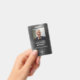Custom Modern Black Metal Employee Photo ID Badge. Personalize this corporate id card badge with your employees name, position, photo and your company logo on the front side and your custom info text on the back side. The employee photo works best in square format. Your logo works best as a png square format with transparent background. The placeholder logo you see on the badge will be completely replaced with your own logo design.