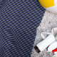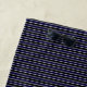 This modern, masculine beach towel features a dark striped pattern in black, navy blue, and white.