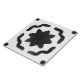 A neutral, white and black painted tile design adorns this ceramic tile.