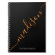 Modern, girly black and orange custom personalized spiral notebook. This simple design features black colour background, with orange colour name or monogram text template. The name is written with a huge beautiful swirly hand lettered style script. Great feminine gift for girls and woman. If you need help or matching items, please contact to me.