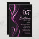 Invite your friends and loved ones with this modern black and pink 95th birthday party invitation. The customizable text area in this invitation template allows you to effortlessly include all the necessary details for your special birthday celebration, including the date, time, venue, and RSVP information. A variety of paper types and corner styles are available for your unique invitations, along with the option to download if you prefer a digital format.