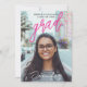 This modern stylish Photo Announcement for graduation features minimalist design adorned with bold magenta and white typography, complemented by a striking large photo, on the front. Flip it over to the back, where all the graduation details are elegantly presented against a stylish black background. Feel free to personalize the photo and texts to make it uniquely yours. Plus, it's conveniently available in digital download format for easy sharing. Make a statement with this chic announcement!!