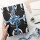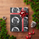 A fun gift wrapping paper for dog lovers featuring your picture of choice in a circle on black background and whimsical script font for "Happy Birthday" plus your name of choice - or enter any other text.