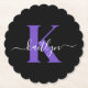 These simple, elegant black round fluted edge paper coasters with your first name in a trendy script font in white typed over your first initial in a modern cap font in purple are perfect for keeping your tables and counters free from water rings. They absorb droplets so you don't have to worry when your entertaining or enjoying a drink. They're stylish and trendy and yet very classic.