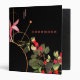 Modern cookbook binder for organizing your family's recipes, meal planning or other subject. Features a modern botanical cherry design with an abstract geometrical backdrop in a modern colour palette with bright red cherries on a black background and custom coordinating text.