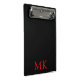 Modern Black and Red Monogram Initials Mini Clipboard. Beautiful design featuring simple red double initial monogram text on modern black. Personalize with your own text. Cute accessory, great for use at your school, home, or office. Would make an excellent gift for birthdays, holidays, graduations, promotions, any special occasion, or everyday. We invite you to visit our store, Simon & Grace for matching products and more.