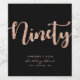 Minimalist 90th birthday black and rose gold wine bottle label in modern, chic and elegant typography style. Featuring age "ninety" in sparkly rose gold. Customise with age, name, and year of birth.