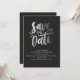 Modern Black Save the Date Invitation It is a custom text save the date wedding invitation. You can customize all the text in this invitation. This beautiful and unique Dark shady theme save the date wedding invitation comes with a white envelope. It is written in simple and elegant grey typography and If you want to customize it more simply press the personalize it button. Dimension: 5" x 7" Envelopes: White Customizable: Yes, Create your own.