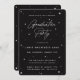 An elegant, modern Graduation Party Invitation featuring a white handwritten script font and scattered stars against a black background. All text - apart from the 'Graduation Party' script - is fully editable, so you can easily add or delete text and change the font style/size/colour/layout to suit your needs. Other colours and coordinating accessories are available.
