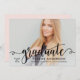 Stylish and elegant graduation announcement card and party invitation features a senior photo with "graduate" script overlay. Personalize the modern custom text with your grad's name, school, and class year. This two-sided card design includes graduation party invitation wording on the back. The pretty blush pink and black colour scheme can be customized to coordinate with photo or party colours.
