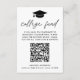 Celebrate your graduate’s achievement with this elegant college fund enclosure card featuring a black graduation cap at the top and "College Fund" in a modern black script on a white background. Easily personalize it with the graduate’s name, school name, graduation year, and custom instructions. A convenient QR code allows friends and family to quickly contribute to the graduate’s college fund, making it a perfect addition to graduation announcements, party invitations, or thank you cards. Ideal for both high school graduates, this design provides a simple and stylish way to invite support for the next chapter of their journey.