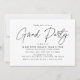 Celebrate your big day with these fun and modern graduation party invitations featuring "Grad Party" in a trendy black script font. Your graduation party details are displayed below in a clean, stylish layout. The simple yet chic design reverses to showcase a playful black and white dotted geometric pattern. Perfect for high school and college graduates, these trendy grad party invites set the tone for a stylish and memorable celebration.