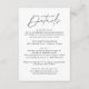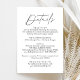 Simple and elegant wedding details card featuring a black, handwritten script mixed with modern lettering against a white background. Personalize the minimalist wedding details card with your wedding details such as reception information, hotel accommodations, wedding website, etc. The black and white wedding details card is perfect for modern weddings.