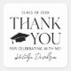 Stylish square graduation thank you stickers feature modern black serif Thank You with grad cap accent and stylish custom text that can be fully personalized with the graduate's name, class year, and simple thank you message.